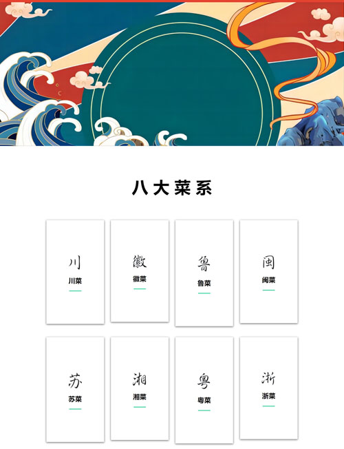 然后就是我们中国的八大菜系的介绍页面了。