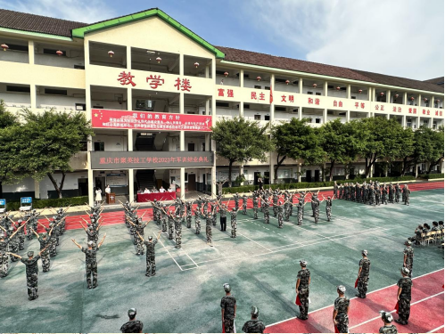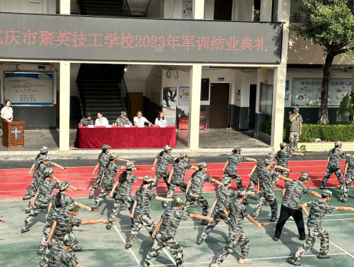 重庆市聚英技工学校2023级新生军训在全体师生和军训教官的共同努力下,圆满完成十天军训任务。9月1日上午学校举行了2023级新生军训汇报表演暨表彰大会,彰显了我校学子们的军事训练成果和军事素养。
