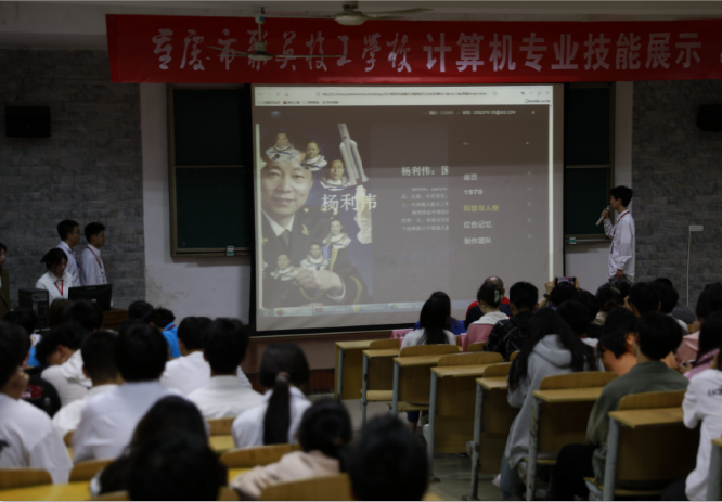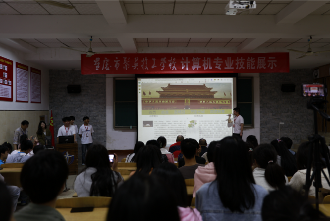 后续,家政服务专业进行了《黄水谣》、《长城谣》的弹唱表演以及计算机专业的网页设计作品展示。