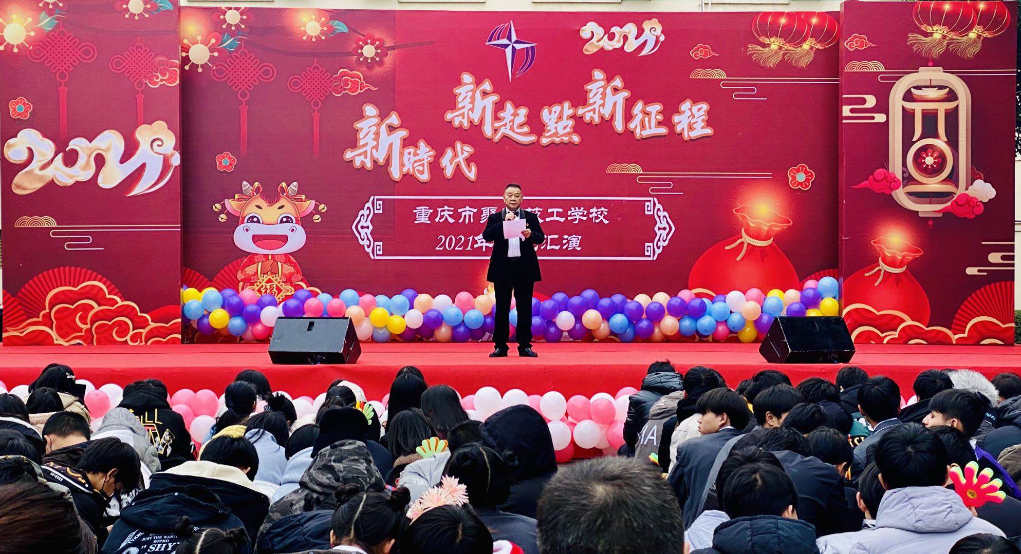 “子去丑来腾锦绣,鼠归牛到竞辉煌。”2020年12月27日下午14:00点,重庆市聚英技工学校全体师生欢聚一堂,在学校操场上隆重举办了以“新时代 新起点 新征程”为主题的2021年元旦迎新文艺汇演。