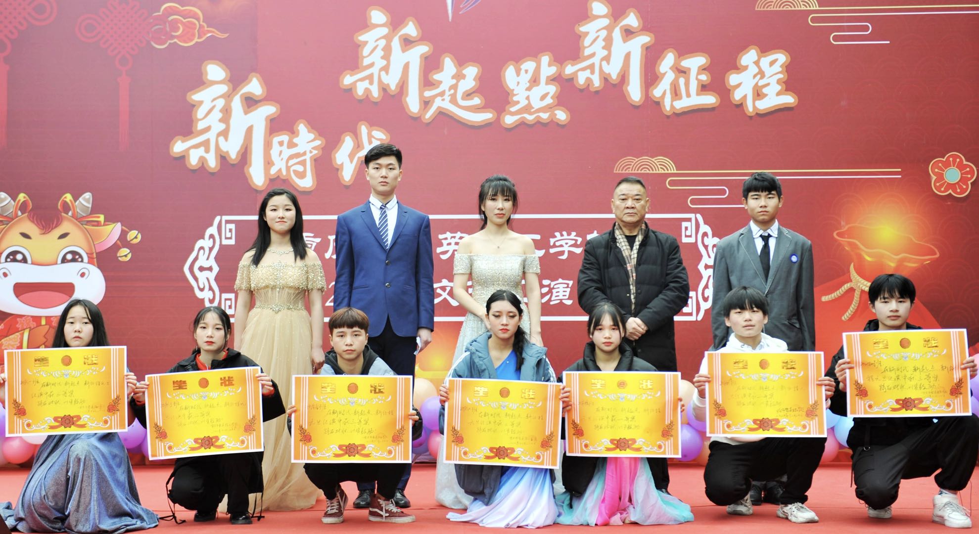 汇演首先是校领导邱校长的新年致辞,邱校长向全校师生、广大家长和支持聚英发展的社会各界朋友们致以新年的问候和真诚的祝福。新的一年,学校将以“升学”“就业”并重为导向,继续努力,打造聚英更加美好的未来!