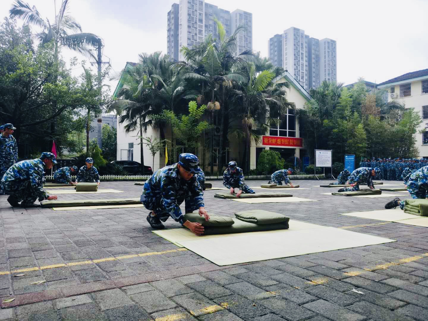 接着依次是新生们的队列表演、军体拳表演、手操表演和内务整理。在队列表演中,各表演方队新生以整齐划一的动作、响亮的口号,向学校、老师、教官、家长汇报十天的军训成果,集中展示了新时代朝气蓬勃、斗志昂扬的精神面貌。英姿飒爽的女生登场,她们巾帼不让须眉,一扫外表的柔弱,为老师们表演了动人的手操表演,她们干净利落、潇洒大方,赢得了全校师生的热烈掌声。