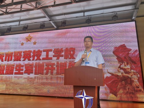 中梁山街道办事处副主任、武装部部长谭超指出:一是军训是通过规范行为习惯实现成长蜕变的契机,鼓励学生改掉陋习;二是学校就业优势广,强调技术人才的重要性;三是要求教官科学施训、关爱学生,希望学生学优成优。