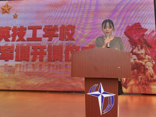 新生代表王露伶表态,将以军训为人生新起点,服从命令、苦练技能、磨练意志,将军训中养成的优良作风传承下去,不负期望。